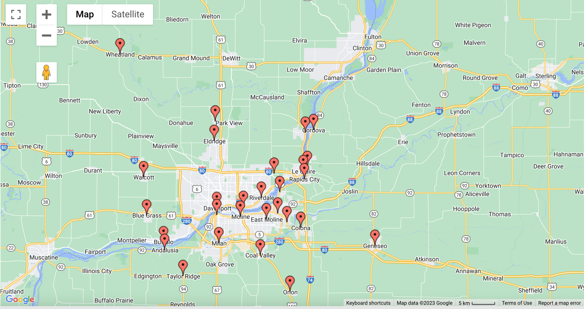 We serve the greater Illinois and Iowa areas. Check out our map below for more information!